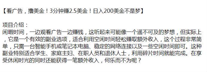 目录:【(10912)一边观看广告一边赚美金,一个有效的副业选项】